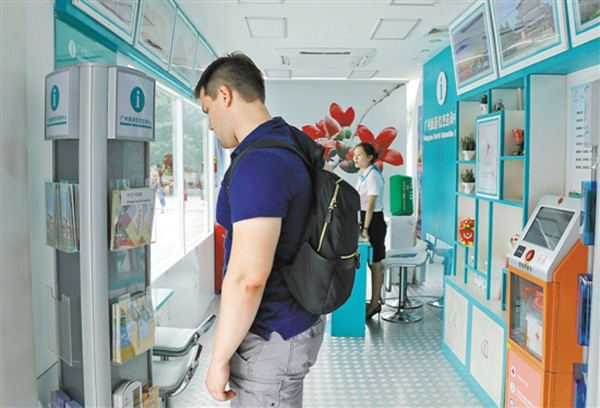 外国友人在广州旅游信息咨询中心查询资料 张美君 摄