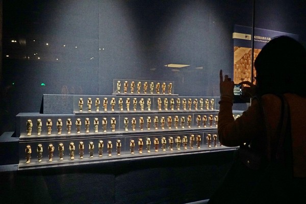 目前所发现的古埃及文物多与丧葬、宗教相关,使得人们往往产生一种错觉,认为古埃及人完全沉浸于来世和神灵世界。实际上,古埃及人非常热爱生活,这便是展览第三部分“尼罗河畔”着重呈现给观众的画面。从农业耕作到“金字塔”式的社会阶层,从日常用具到对独特审美的追求,本次展览的特别之处,是有意识地为观众构建一个立体且鲜活的古埃及文明,观众可以欣赏到古埃及人的头枕、凉鞋,还可欣赏到他们精美的饰品及服饰。